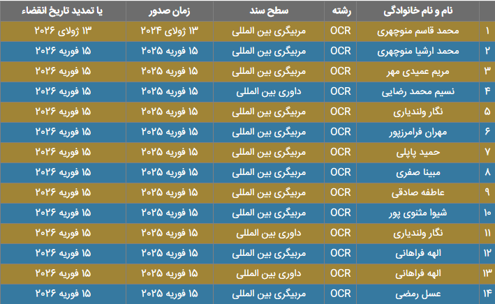 OCR اسامی مربیان و داوران بین المللی ورزش های بامانع